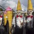 Ataviados como médicos, jueces, profesores, jugadores de tenis y prostitutas, las calaveras se dedican a todo tipo de actividades bailando, bebiendo, cantando y rezando.